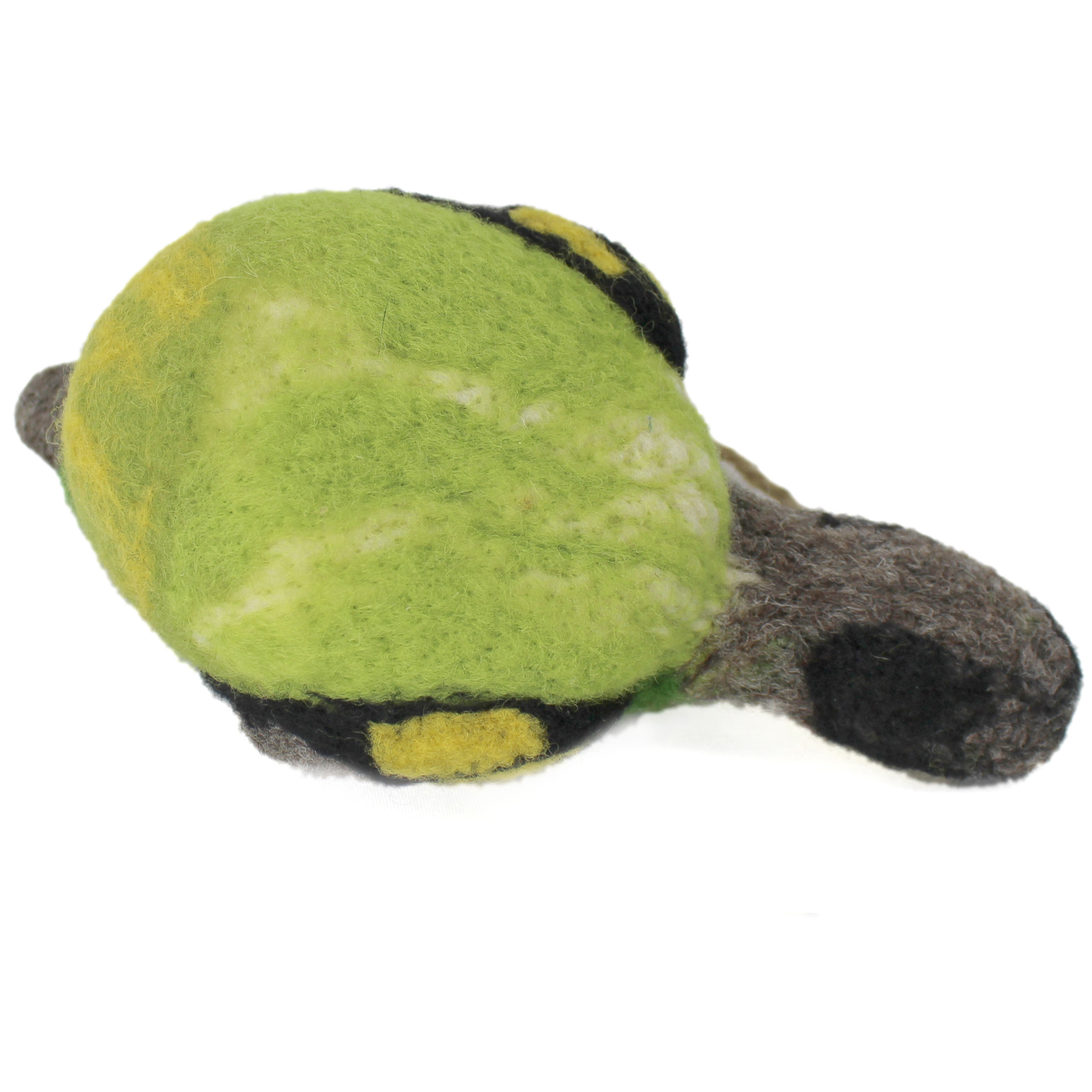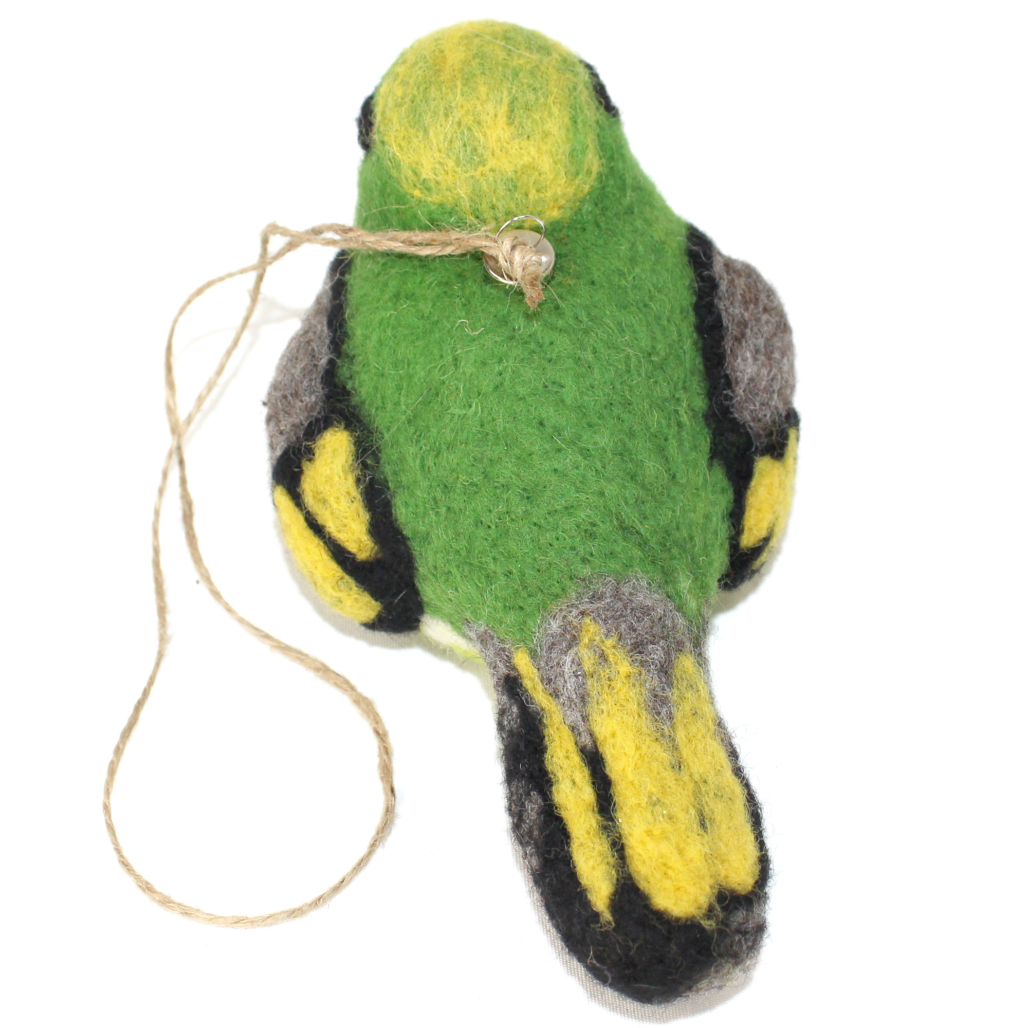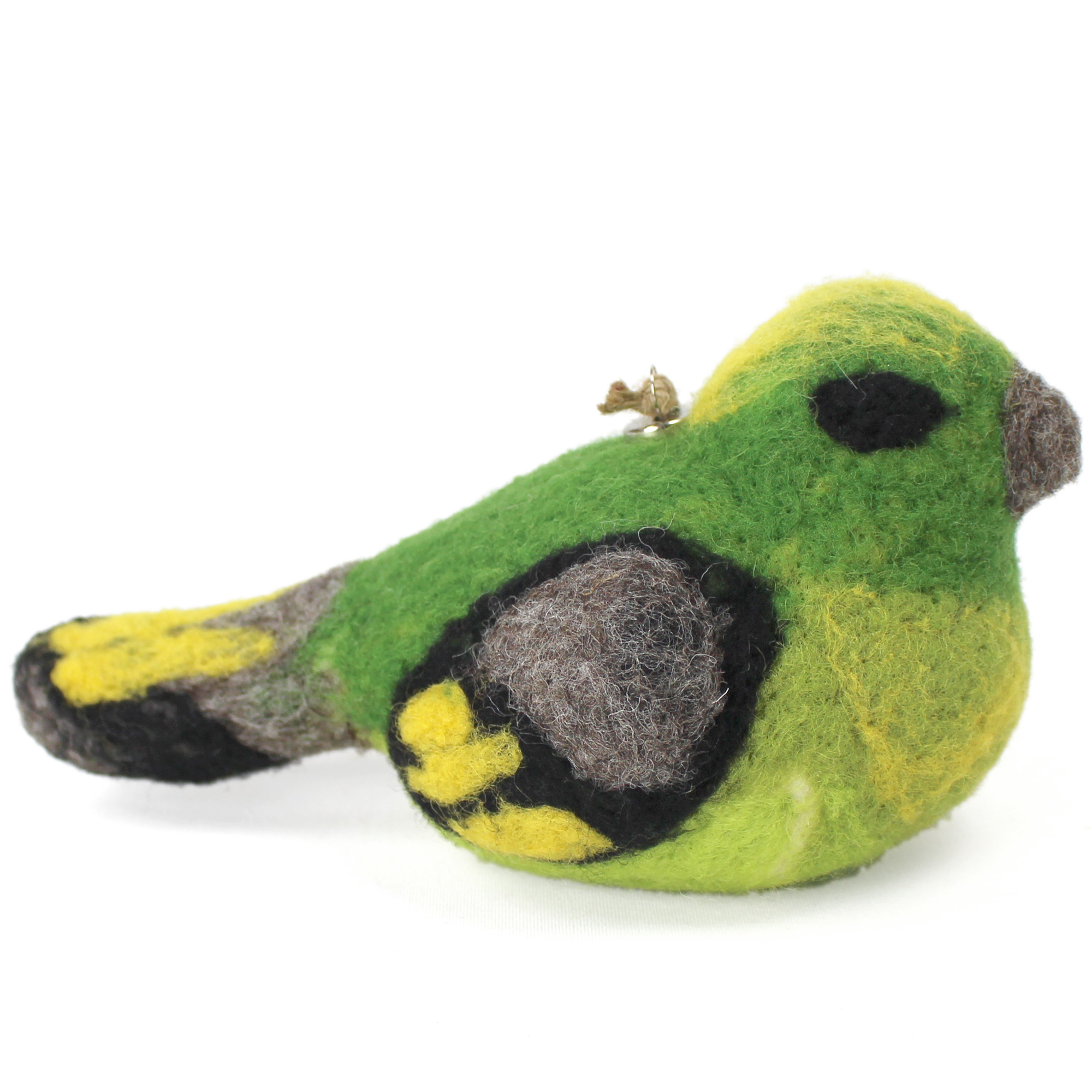 ein handgefertigter Vogel, der mithilfe von Filznadeln und Filzwolle hergestellt wurde