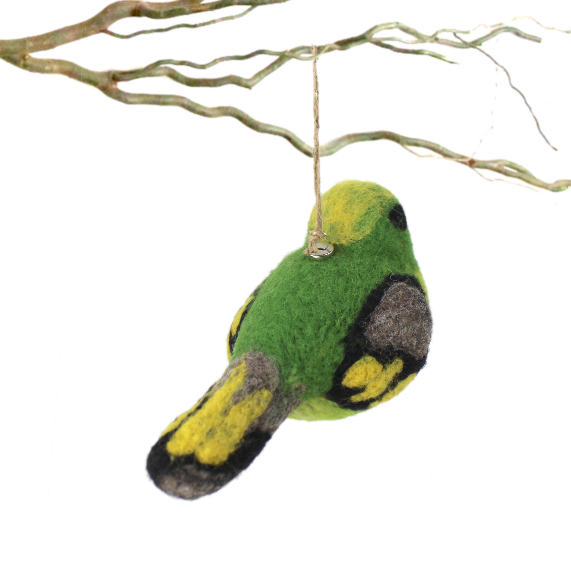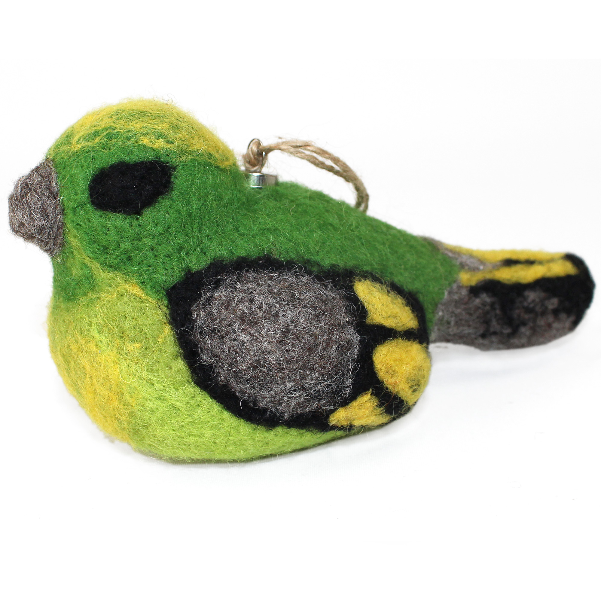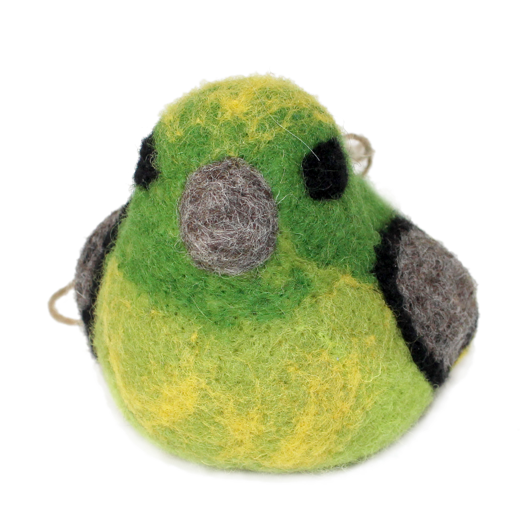 ein handgefertigter Vogel, der mithilfe von Filznadeln und Filzwolle hergestellt wurde