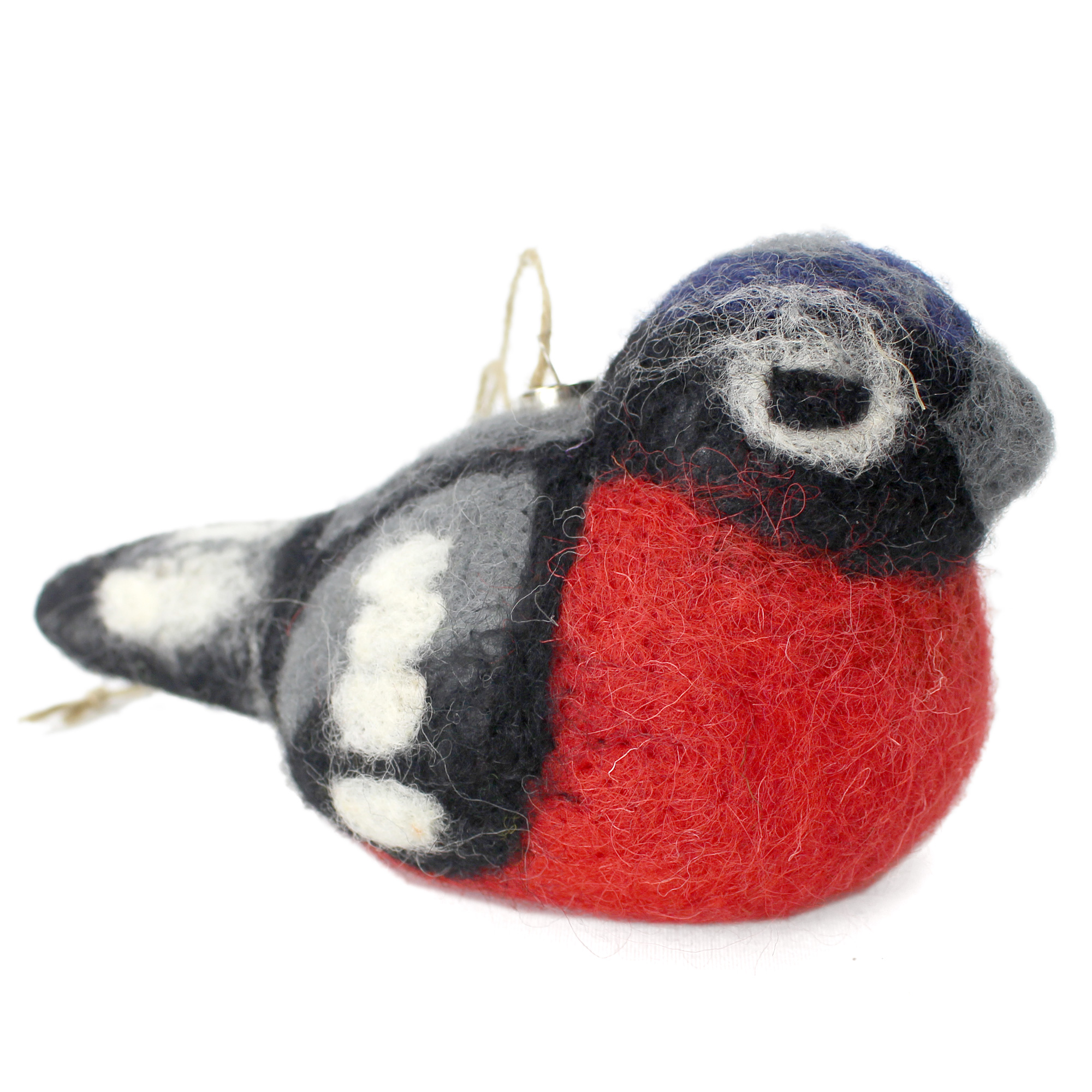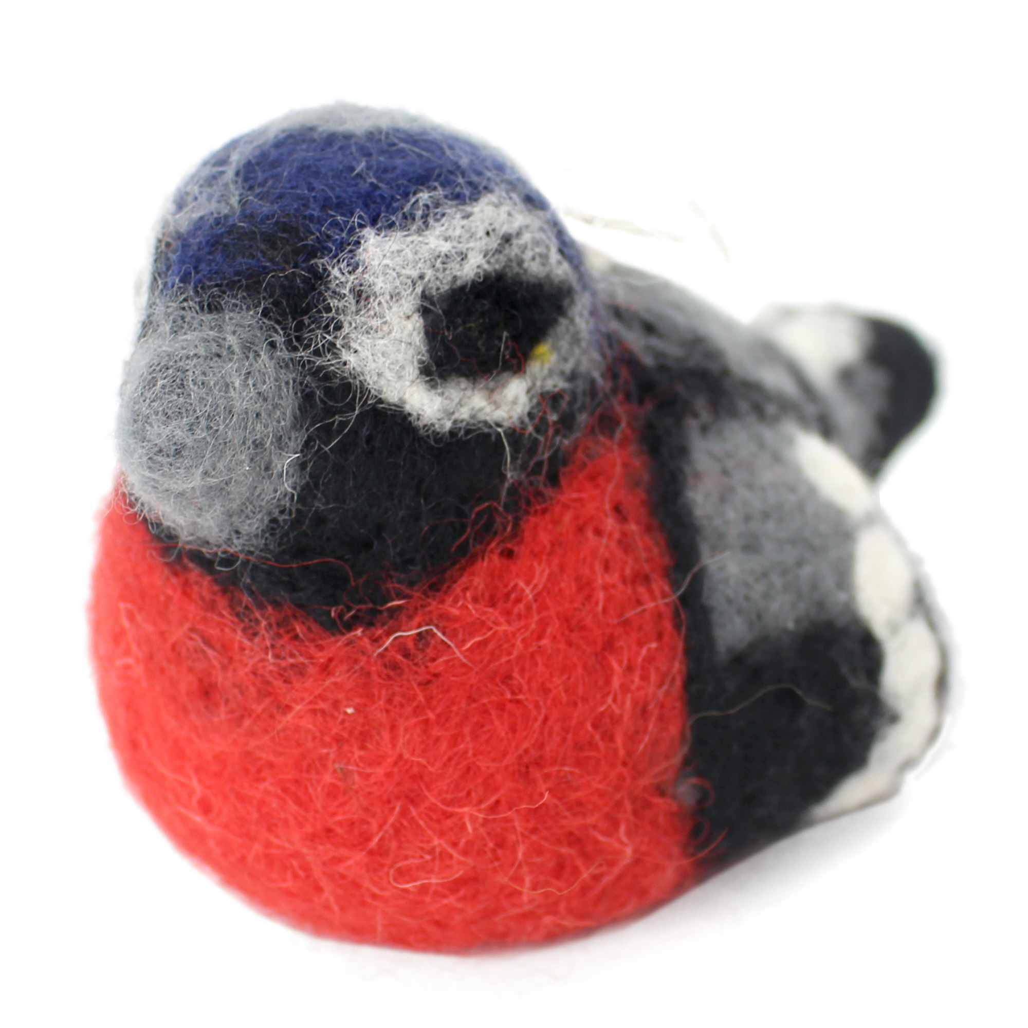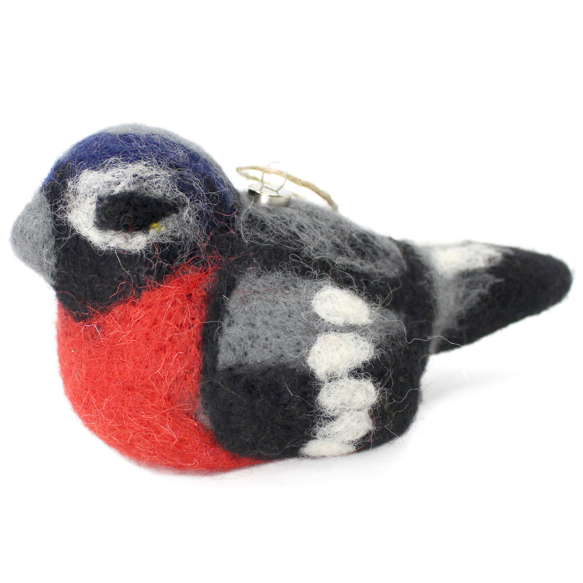 ein handgefertigter Vogel, der mithilfe von Filznadeln und Filzwolle hergestellt wurde