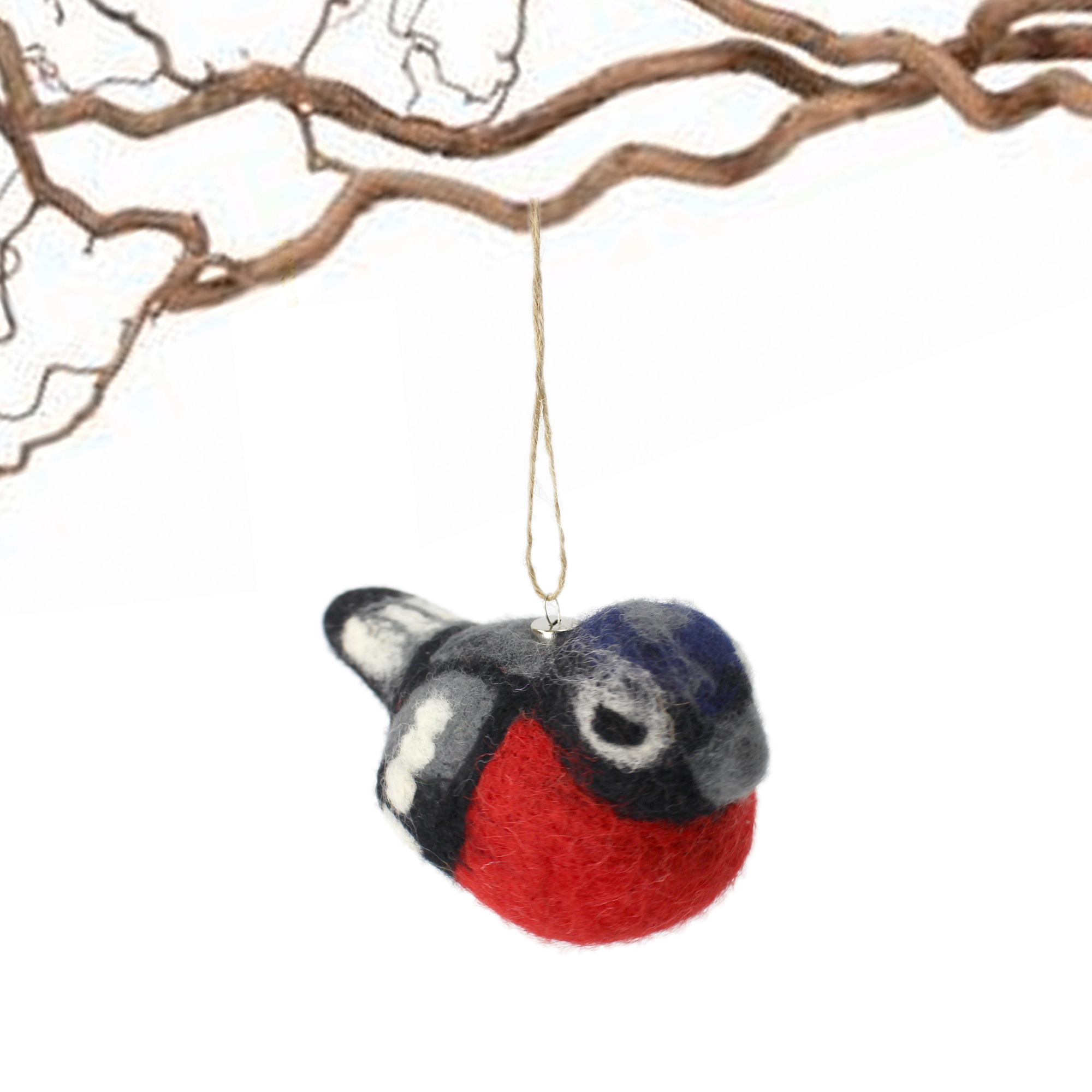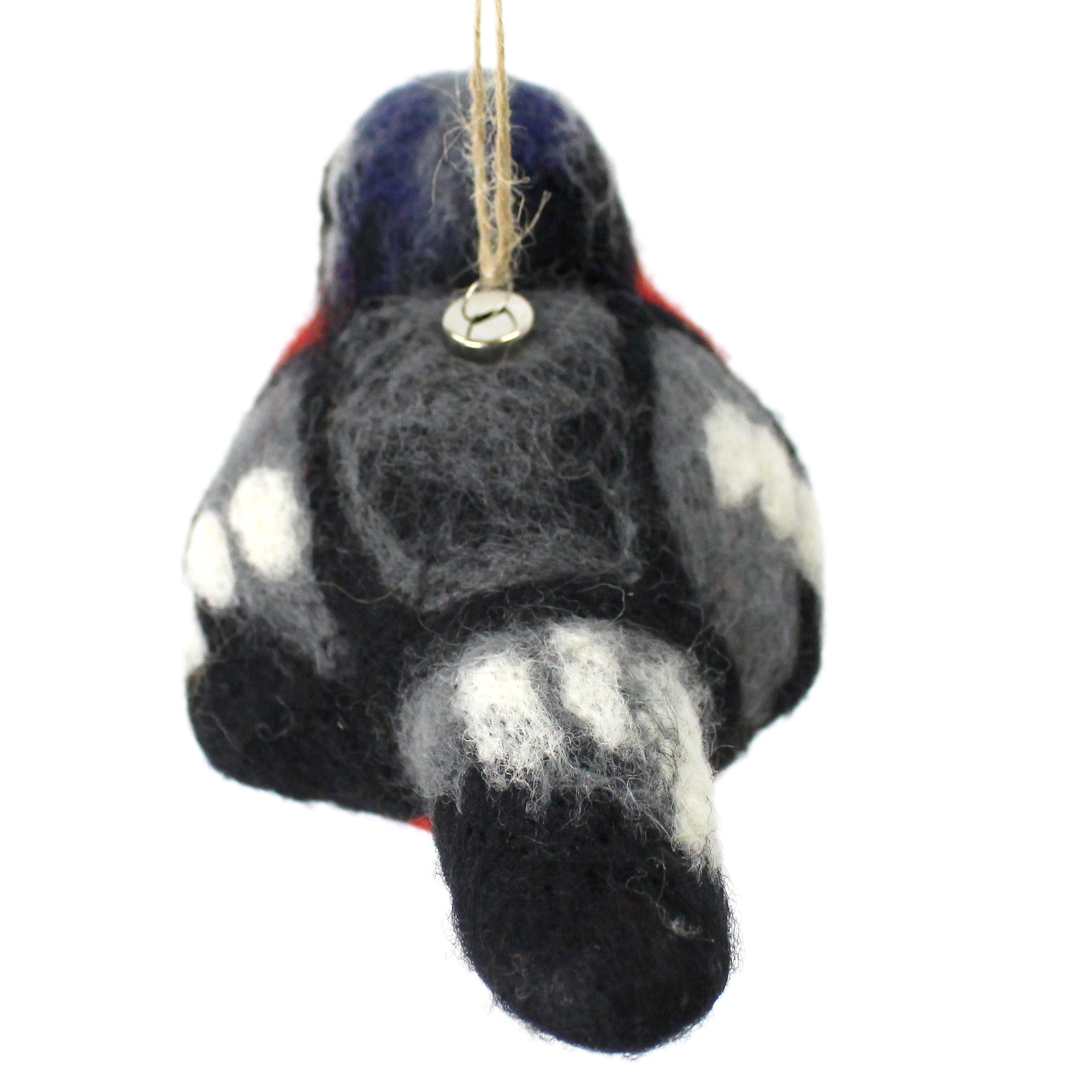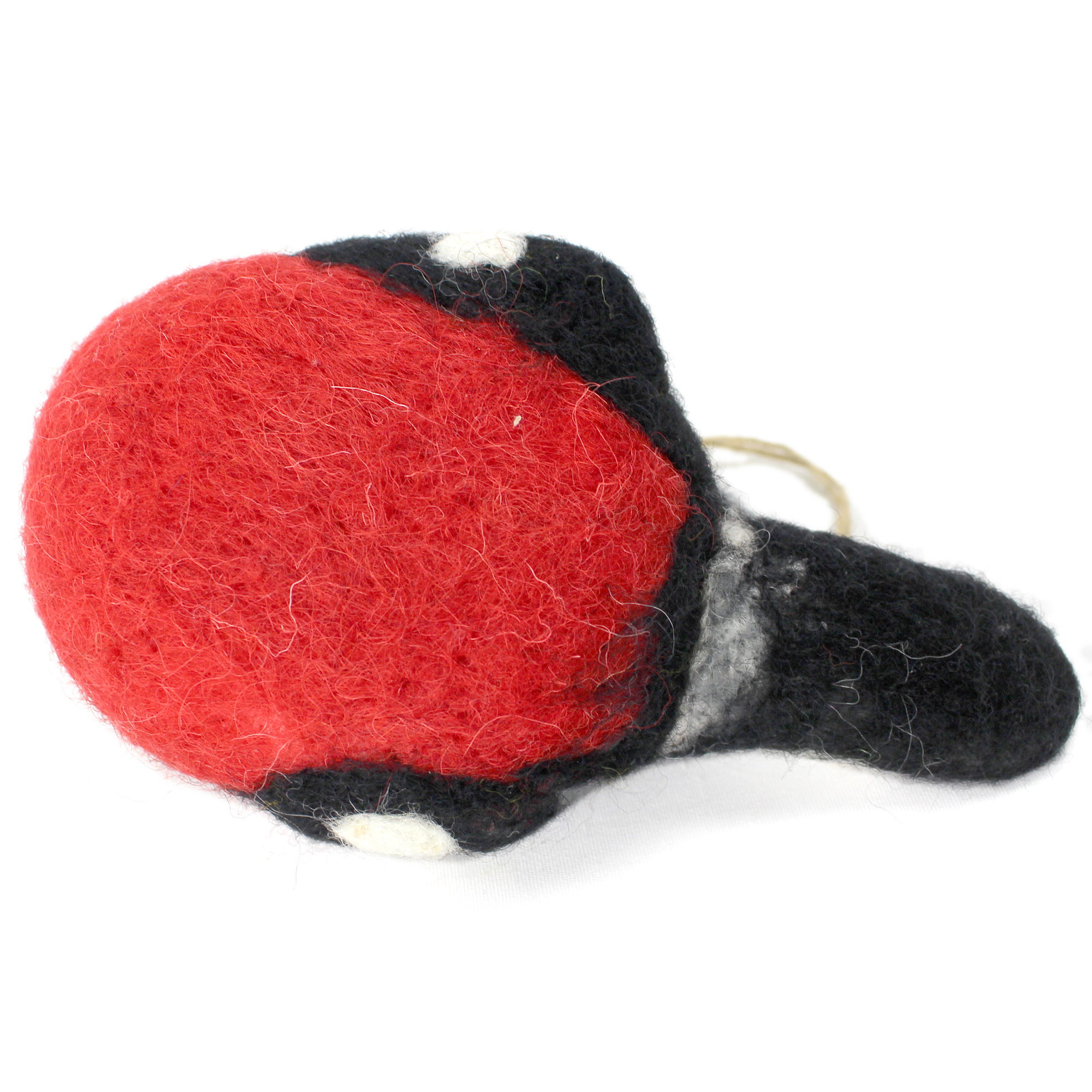ein handgefertigter Vogel, der mithilfe von Filznadeln und Filzwolle hergestellt wurde