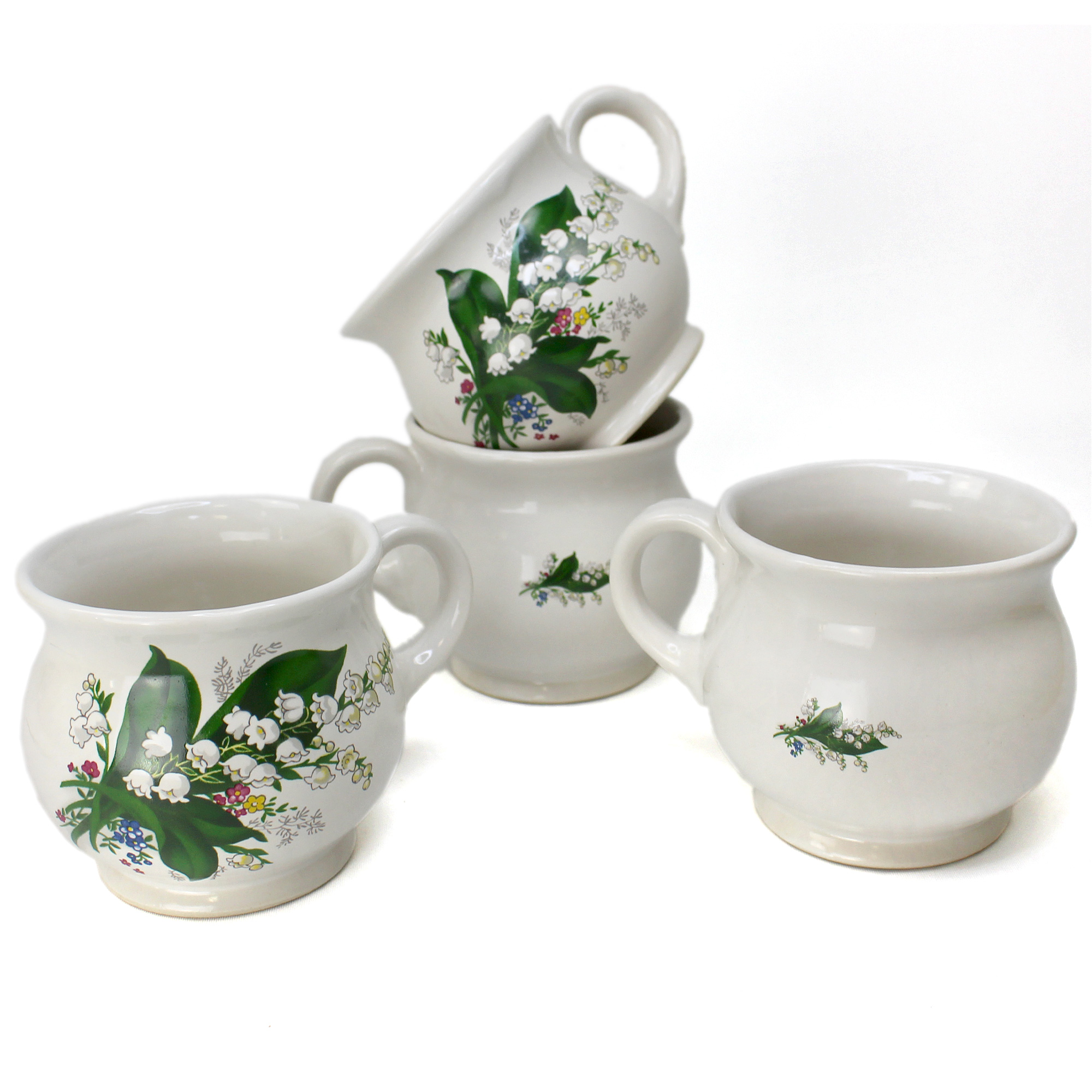 Maiglöckchen Das zarte Maiglöckchenmotiv verleiht jedem Becher im 4er-Set eine besondere, natürliche Ausstrahlung. Die weißen, glockenförmigen Blüten und die frischen grünen Blätter stehen für Reinheit, Frische und den Beginn der warmen Jahreszeit. Auf der weißen Keramik entfaltet das florale Design seine volle Wirkung und sorgt für eine ruhige, freundliche Atmosphäre auf deinem Tisch.