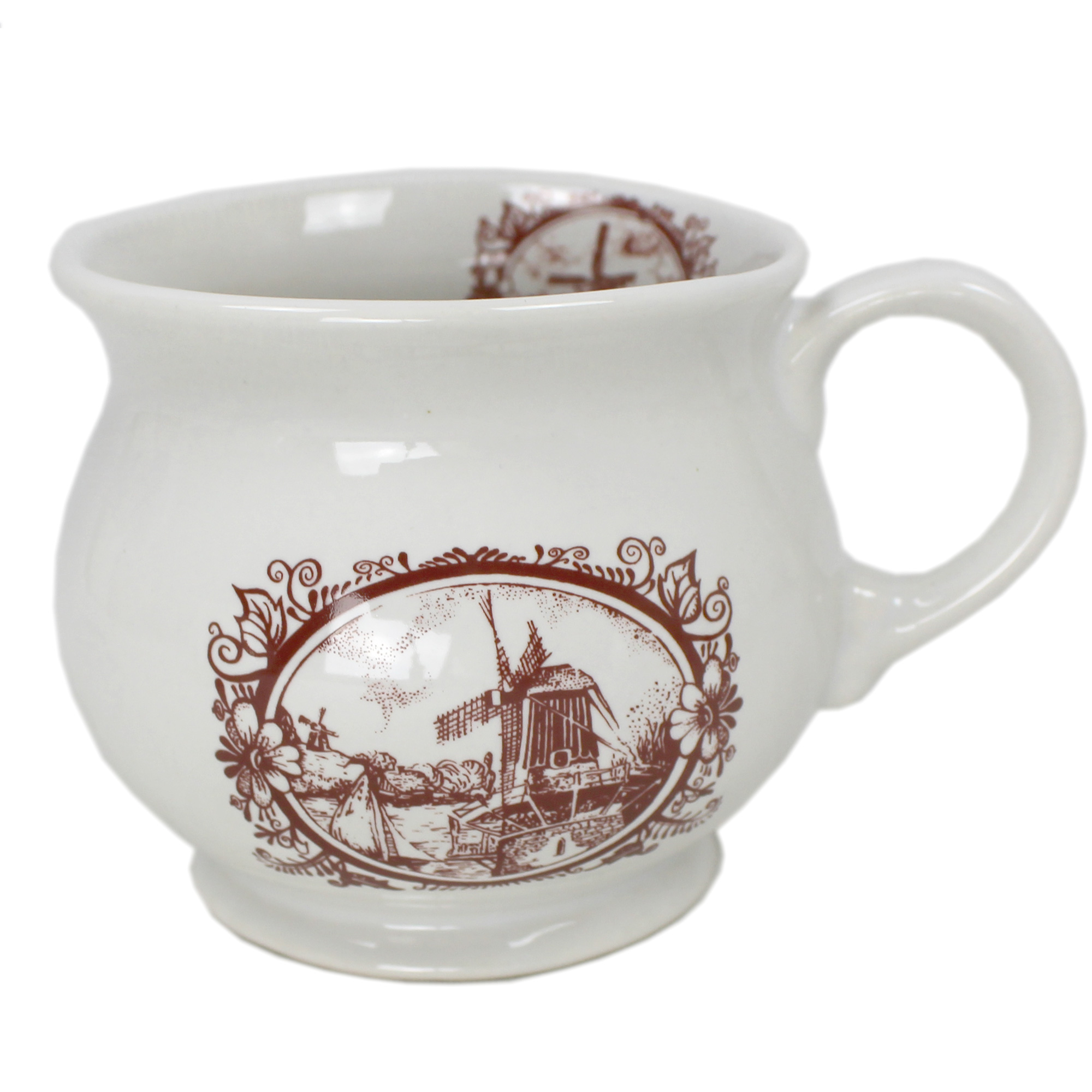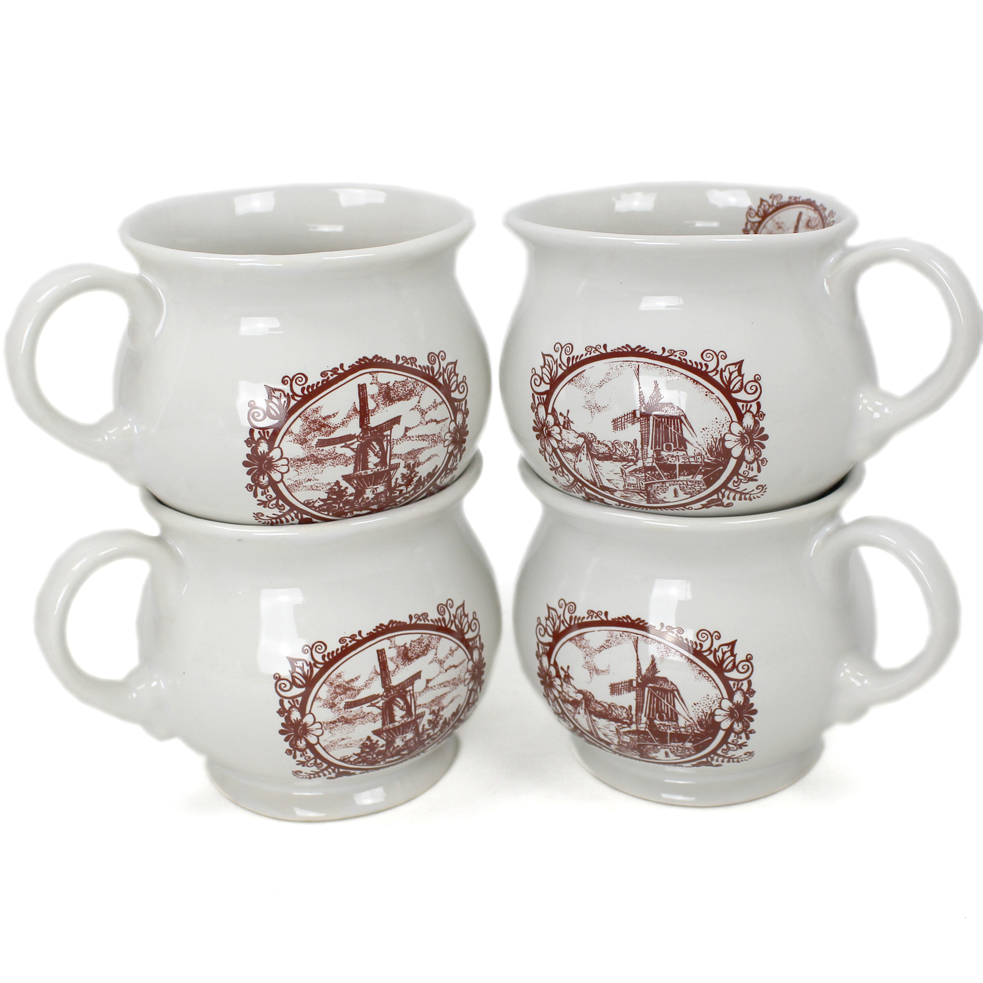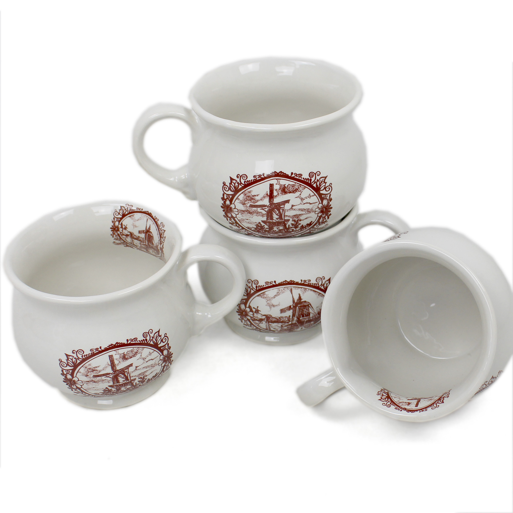 Die aus Keramik hübsch geformte Becher sind im schönen ländlichen Stil gehalten. Sie sind ein stimmungsvolles und dekorierendes Element jeder Landküche. Weiße hochglanz lasierte Keramik wird hier mit dekorativem Wildmühle Motiv in Braun verziert. Das Motiv auf Bechern kann sich etwas von unserem Foto unterscheiden. Qualitativ hochwertiges Produkt.