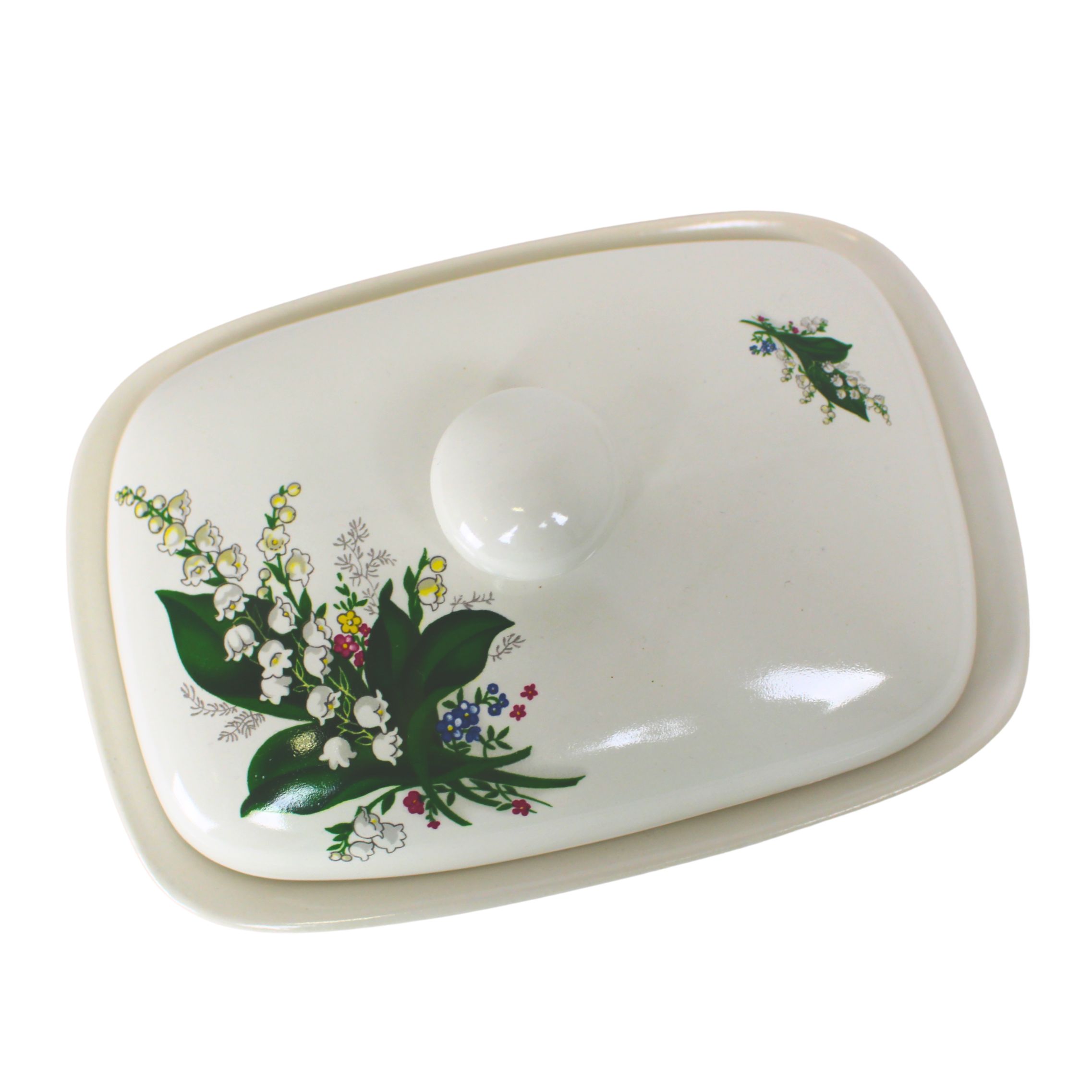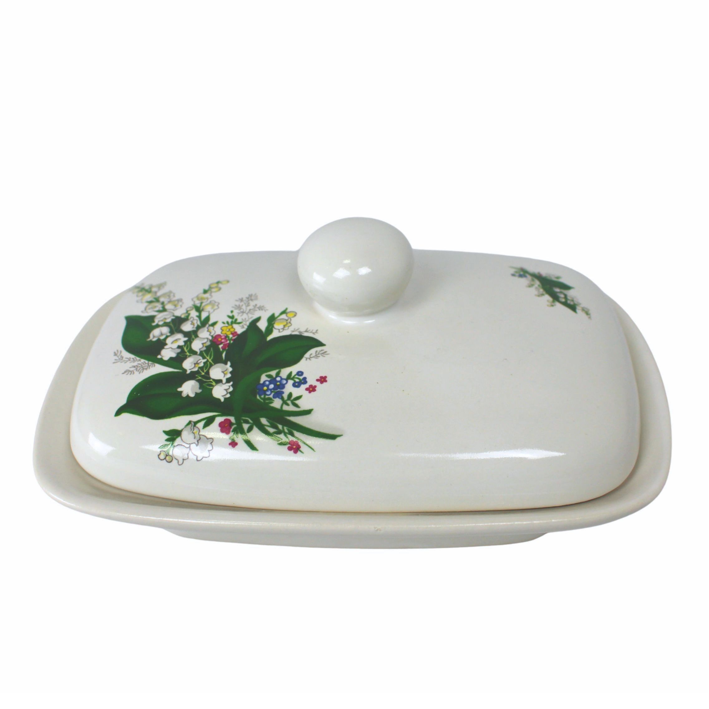 Butterdose Das Maiglöckchenmotiv wurde mit viel Liebe zum Detail auf die Oberfläche der Keramik-Butterdose aufgebracht. Die filigranen Blüten verleihen der Butterdose eine romantische Note, ohne aufdringlich zu wirken. Gerade wenn du natürliche Designs und florale Muster liebst, wirst du von dieser Kombination aus Keramik und Maiglöckchen begeistert sein.
