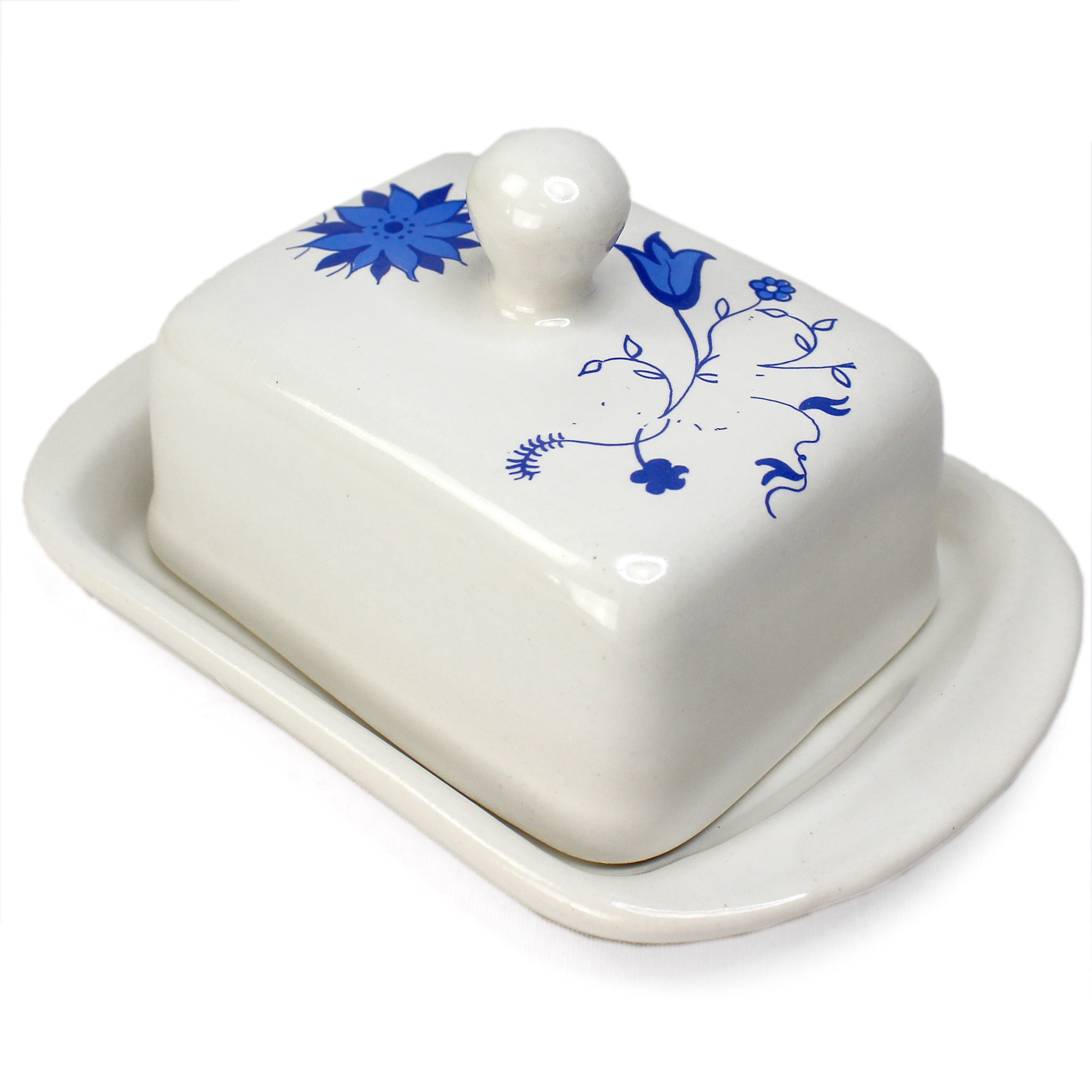 Material: weiße Keramik, verziert mit Zwiebelblumenmotiv.
