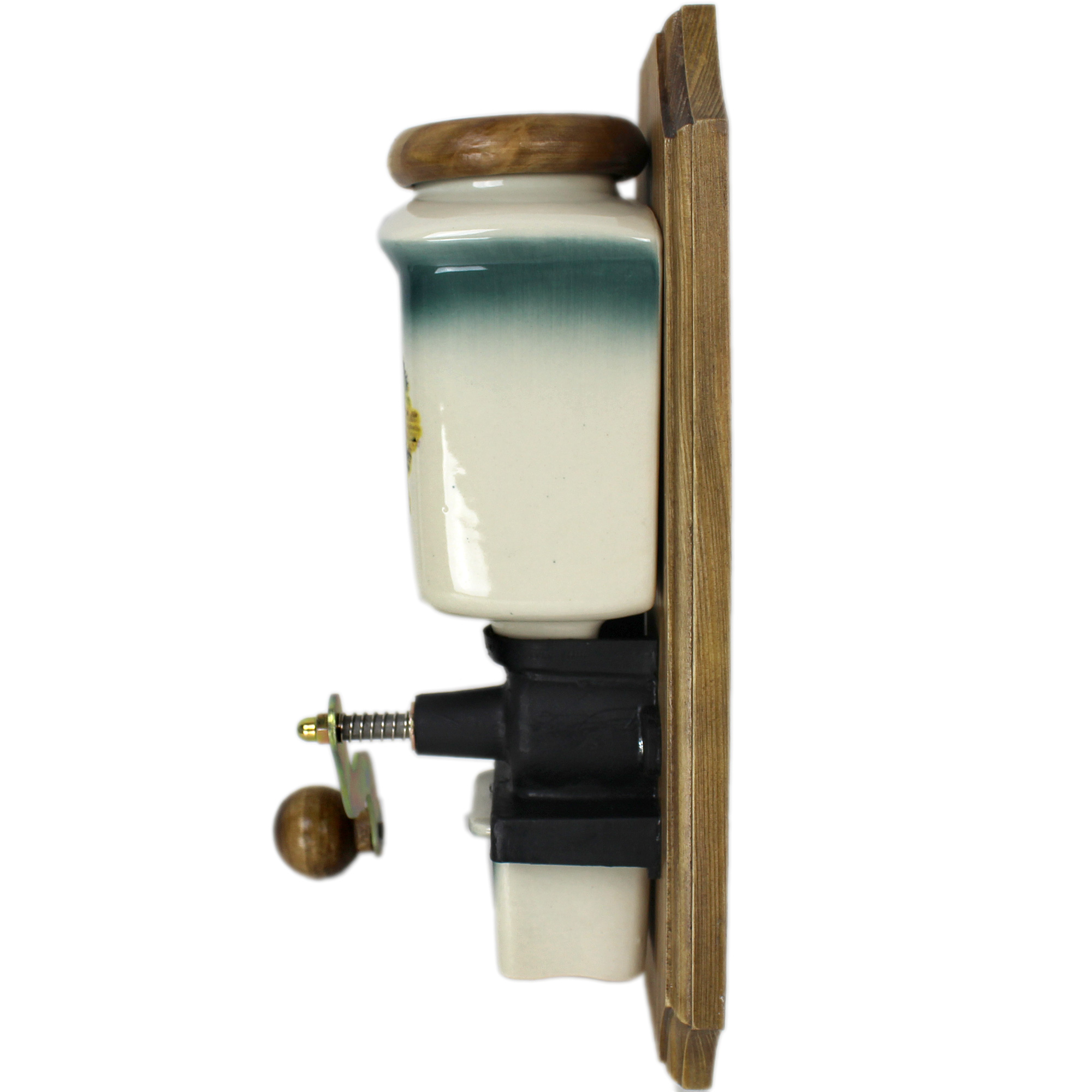 Handmühle zur Wandbefestigung, sehr gut geeignet zum Mahlen von harten Körnern, wie Kaffee oder Pfeffer, Kaffeemühle als Kunststück aus Keramik und Holz in Handarbeit
