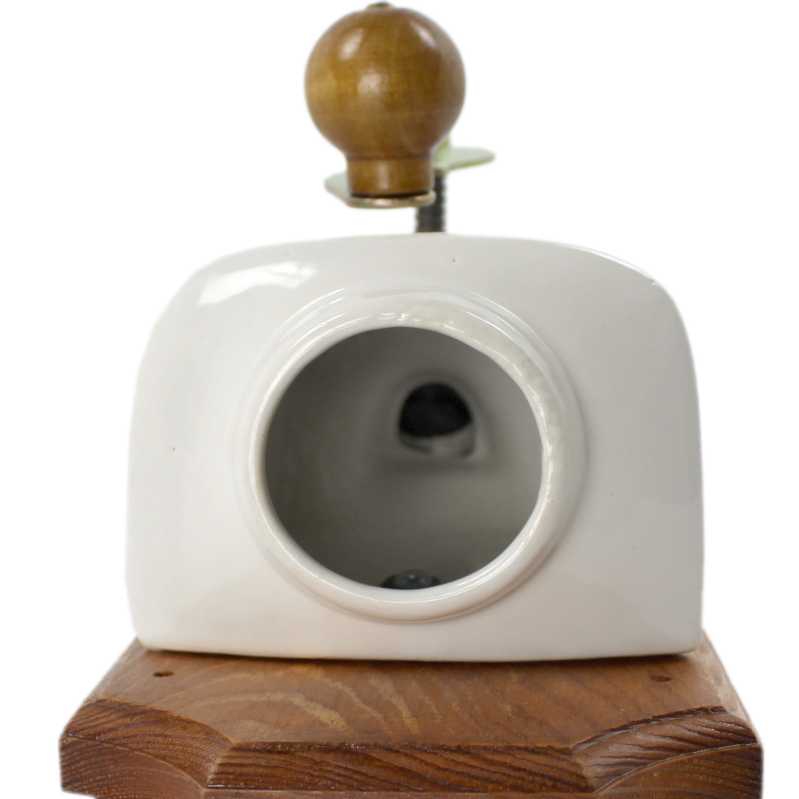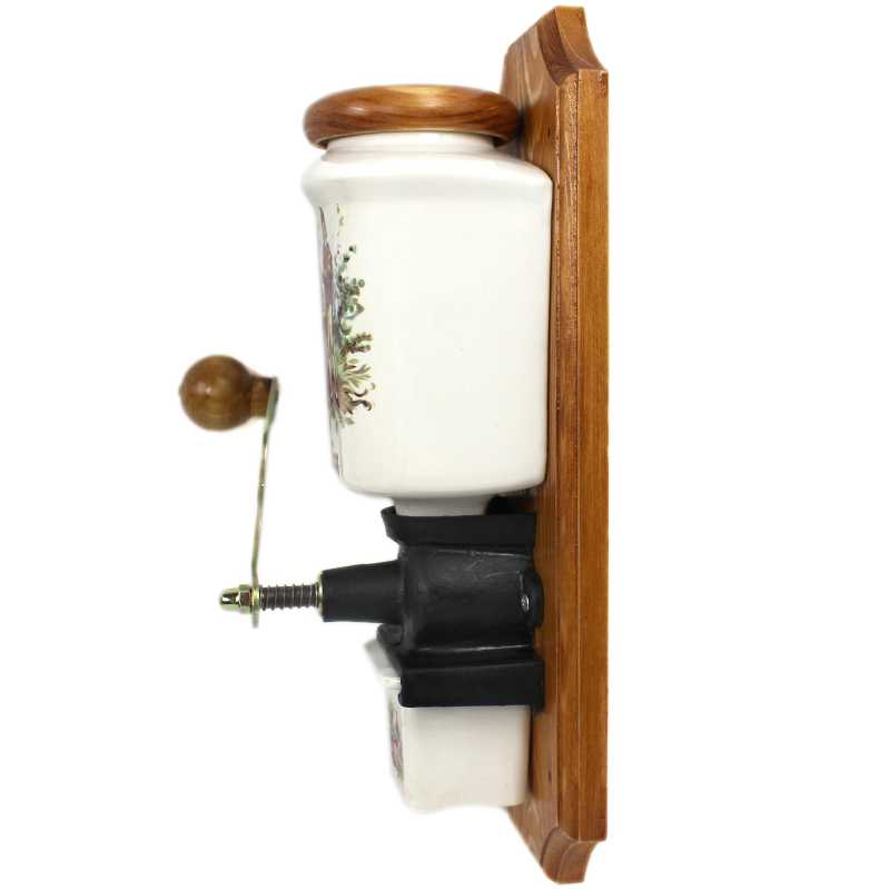 Handmühle zur Wandbefestigung, sehr gut geeignet zum Mahlen von harten Körnern, wie Kaffee oder Pfeffer, Kaffeemühle als Kunststück aus Keramik und Holz in Handarbeit