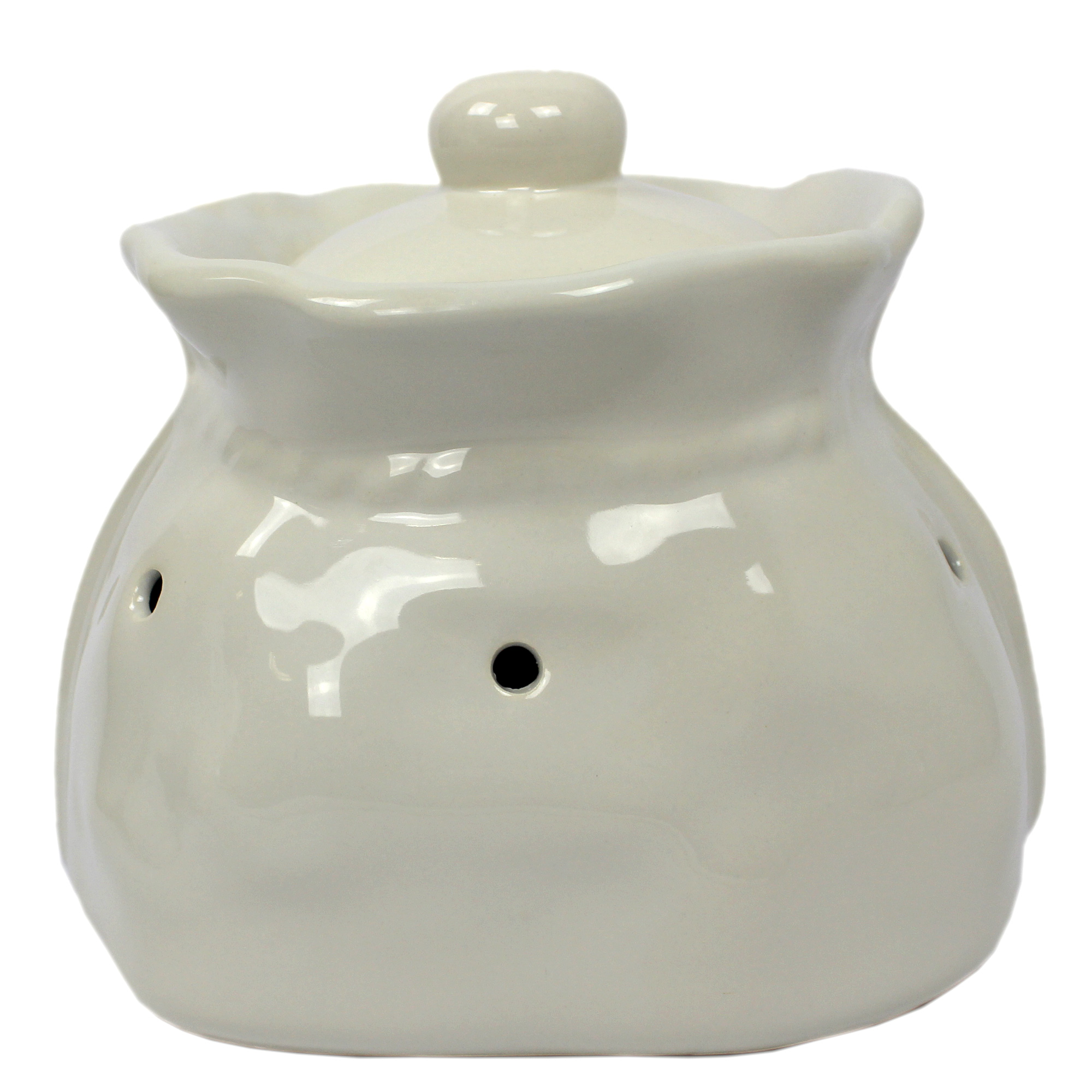Der aus Keramik als Sack geformte Topf ist im schönen ländlichen Stil gehalten. Er ist ein stimmungsvolles und dekorierendes Element jeder Landküche. Weiße hochglanz lasierte Keramik wird hier mit Windmühle in Blau verziert. Das Motiv auf dem Topf kann sich etwas von unserem Foto unterscheiden. Der per Hand gemalte Schriftzug "Zwiebel" gibt gleich den Inhalt bekannt und die Löcher im Topf lassen die Zwiebeln atmen und dadurch sie gut aufbewahren.