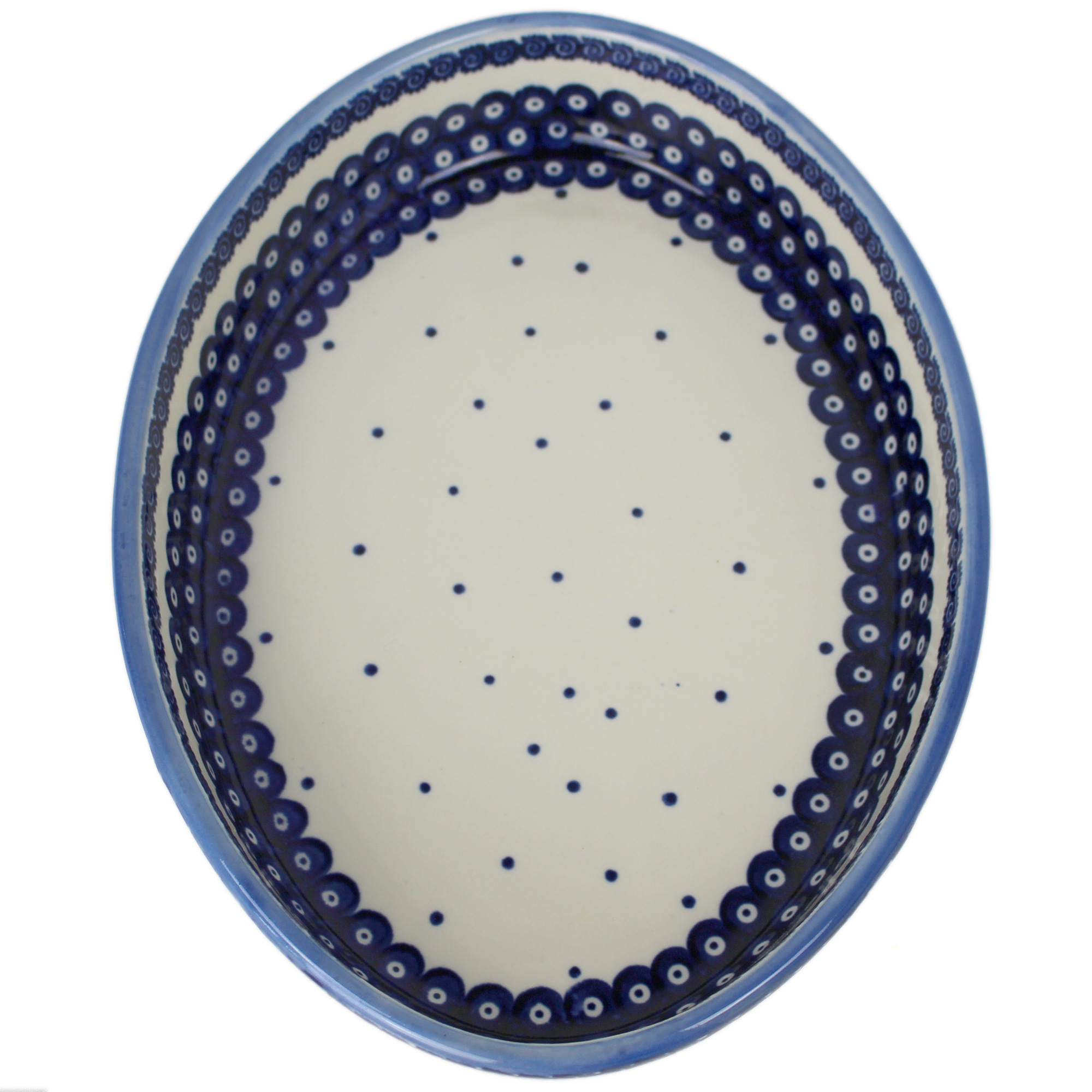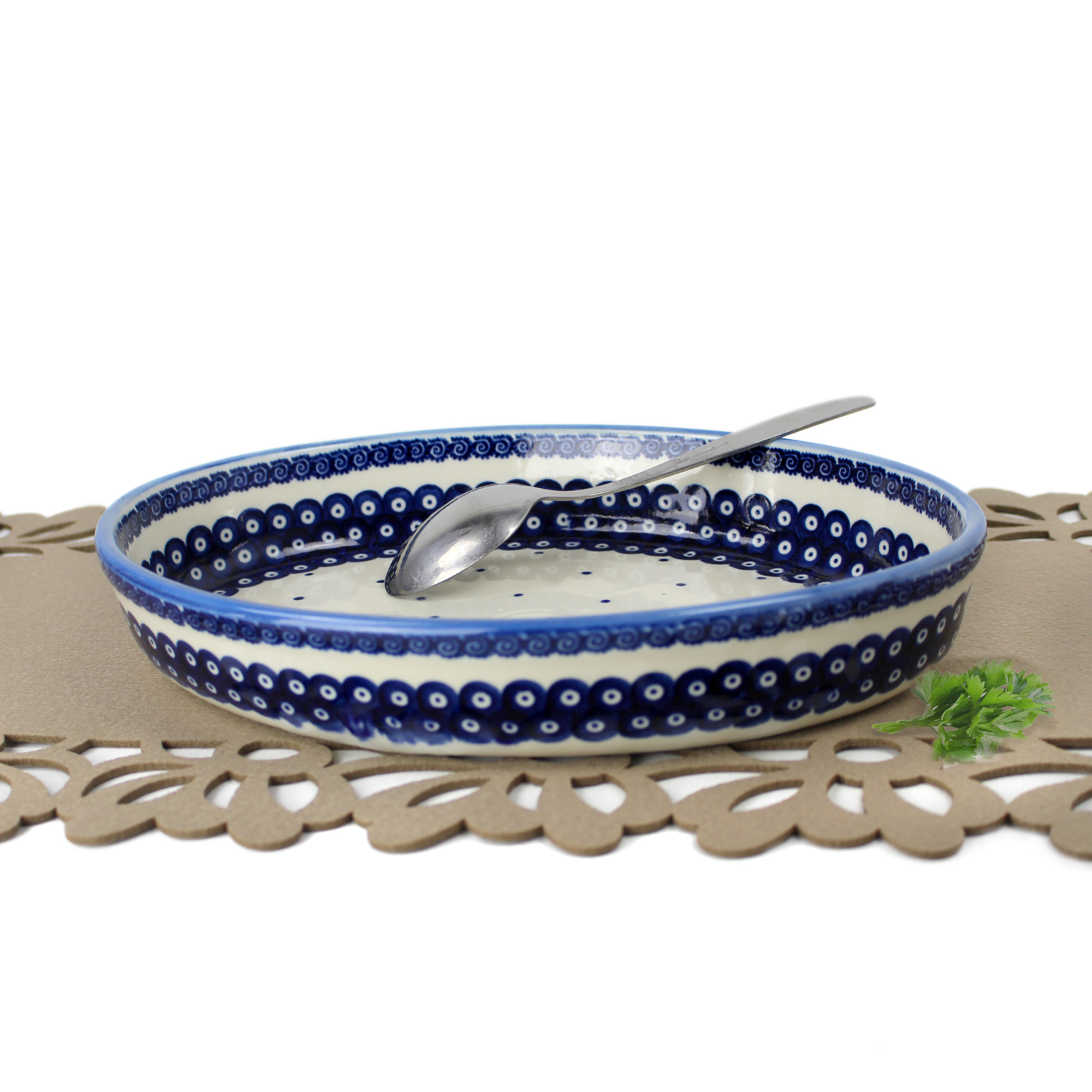 Auflaufschale, ovale Form, robuste Steinzeug-Keramik; dekorative Verzierung von hand bemalt, im schönen Landhausstil gehalten, Unikat